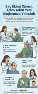 İstanbul, saç ekimi alanında dünya çapında bir üne sahiptir ve Berna Hair Clinic olarak, bu ünü pekiştiren öncü kliniklerden biriyiz. Türkiye’nin ve dünyanın dört bir yanından gelen hastalarımıza, uluslararası standartlarda, etik değerlere bağlı ve yüksek hasta memnuniyeti odaklı hizmet sunuyoruz. Şehrin kolay ulaşım imkanları, tarihi ve kültürel zenginlikleri ile saç ekimi deneyiminizi keyifli bir hale getirebilirsiniz. Konaklama ve transfer gibi konularda da size yardımcı olmaktan mutluluk duyarız. ‘Hair transplant Türkiye’ araması yapanlar için, Berna Hair Clinic, hem kaliteli hizmet hem de unutulmaz bir deneyim vaat ediyor.